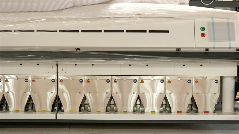 走進(jìn)車間,看不見傳統(tǒng)榨油坊的喧囂與粉塵,取而代之的是潔凈有序的自動(dòng)化流水線與低沉平穩(wěn)的設(shè)備運(yùn)轉(zhuǎn)聲。甘肅忠沃公司生產(chǎn)車間主任宮建忠介紹:“這臺(tái)設(shè)備是我們車間的核心設(shè)備——色選機(jī)。它的主要作用是通過(guò)激光篩選剔除果仁中的殼,提高油品出品率。車間共配置兩套設(shè)備,最終使仁中含殼率不超過(guò)2%,這是高品質(zhì)油品的基礎(chǔ)。”