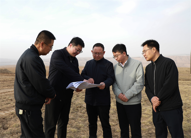 仲春時節(jié),寒意未盡。甘肅華電40萬千瓦風光儲安礦項目預(yù)選廠址上一派熱火朝天的忙碌景象。環(huán)縣工業(yè)和信息化局工作人員與環(huán)縣工業(yè)集中區(qū)負責人圍站在一起,對照圖紙、實地踏勘,一場直奔問題、現(xiàn)場推進的“一線辦公會”就地召開。